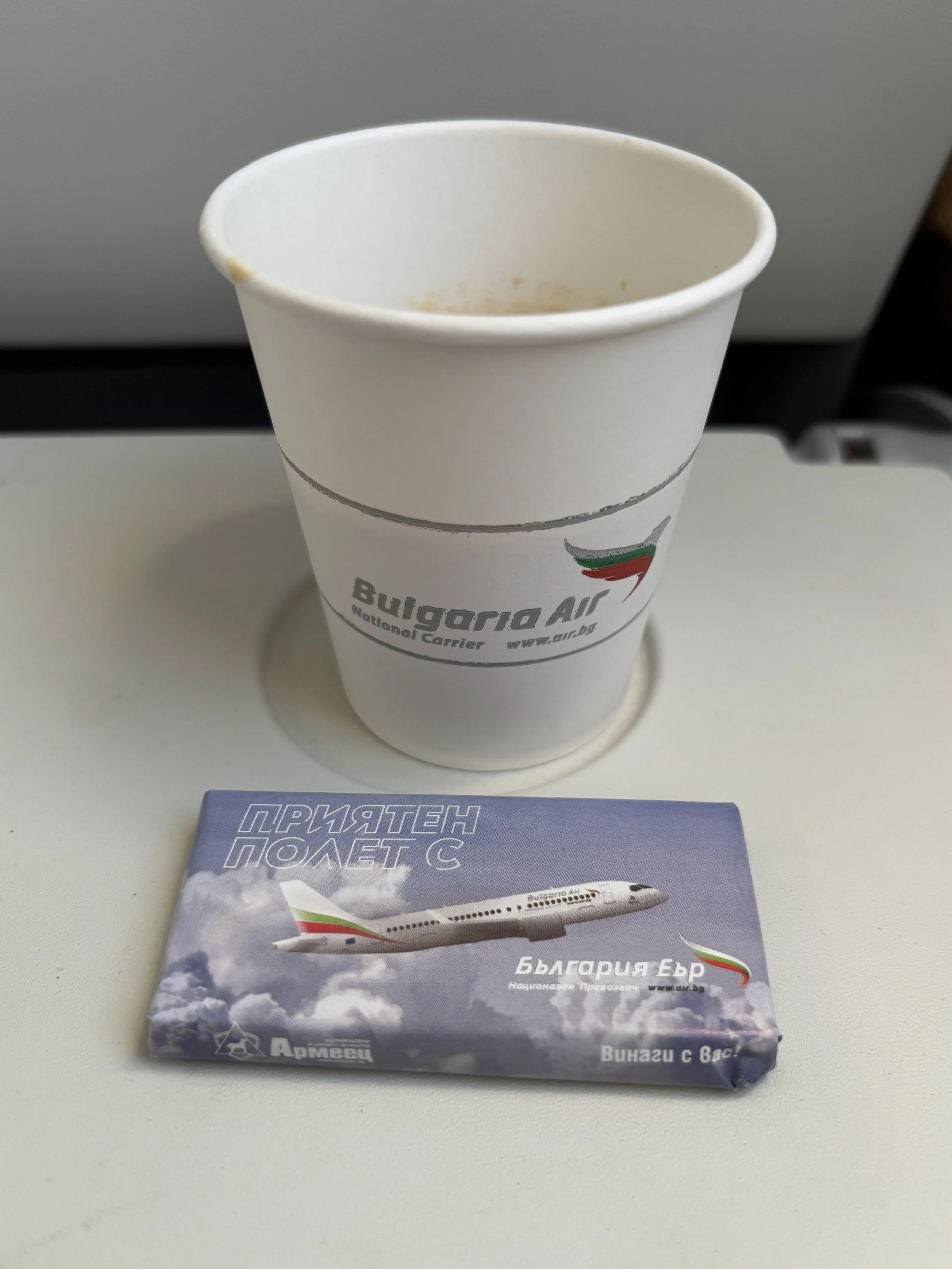 Oh, and that’s not all! Because, after the coffee, the crew also distributed these nicely wrapped Bulgaria Air-branded and A220-themed little chocolates! Always a nice details when airlines do this (like SWISS, for example).