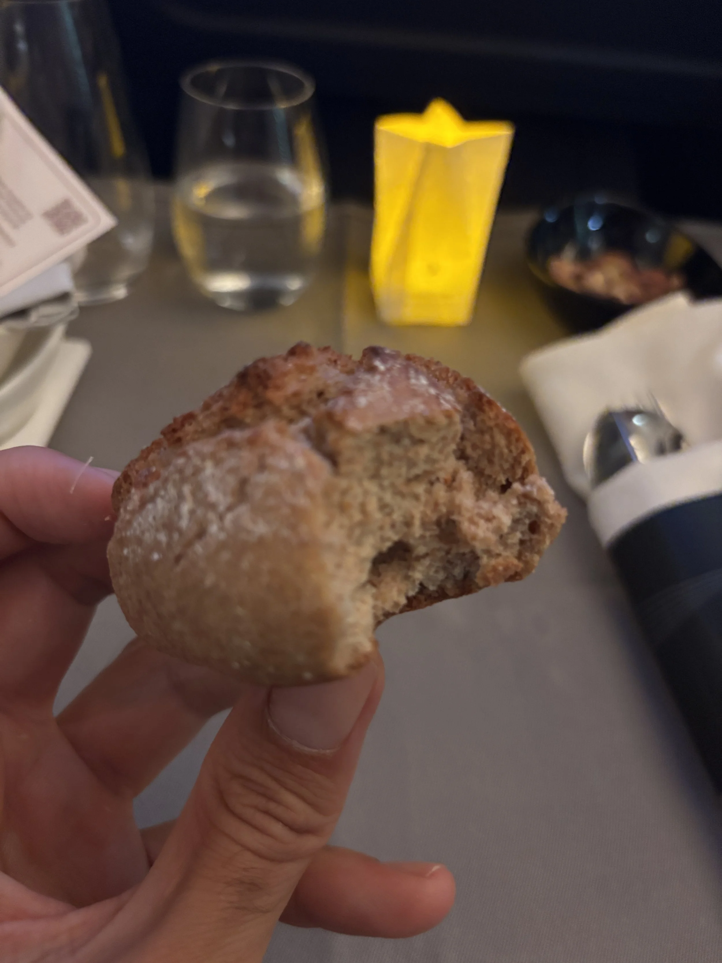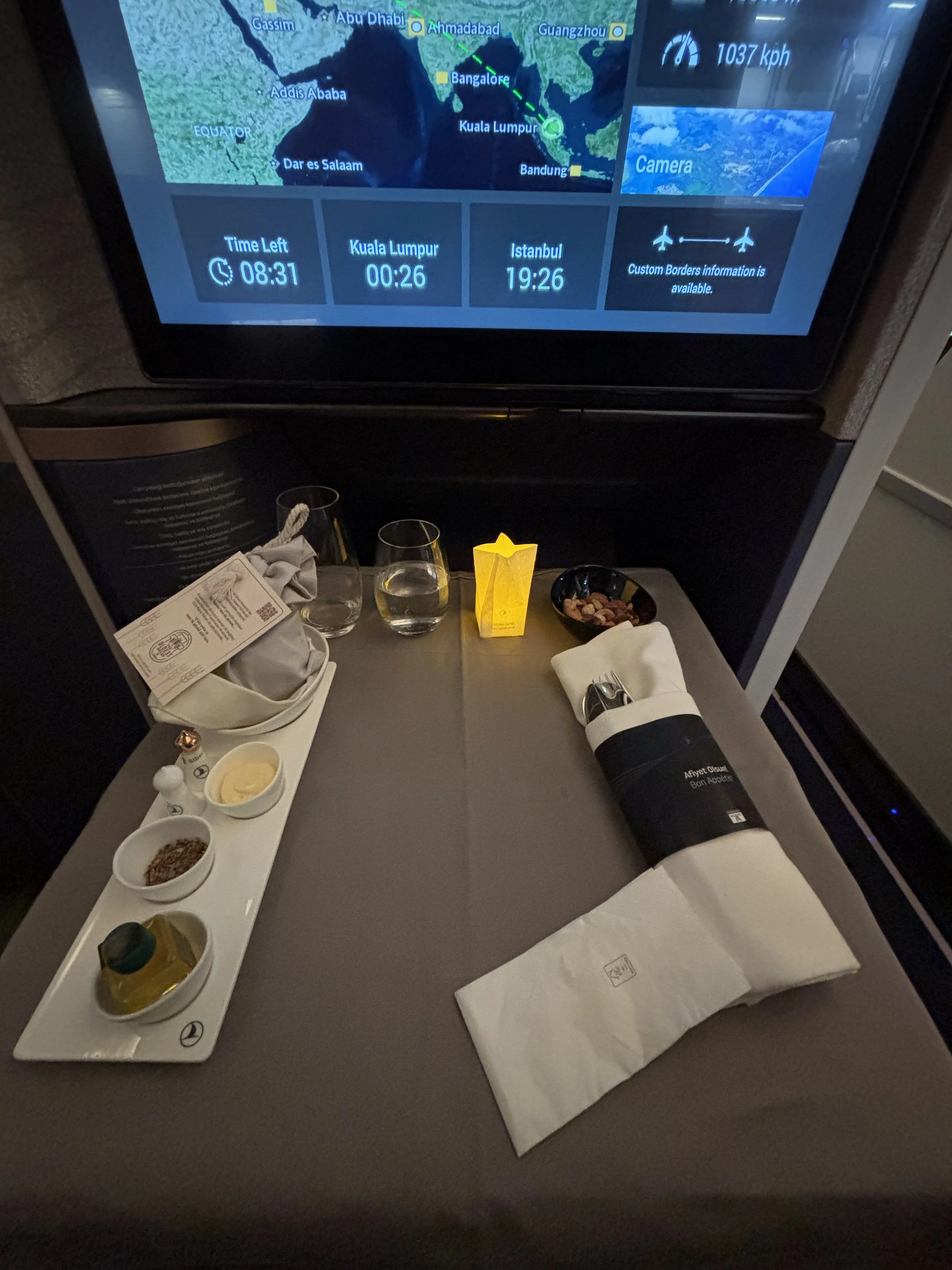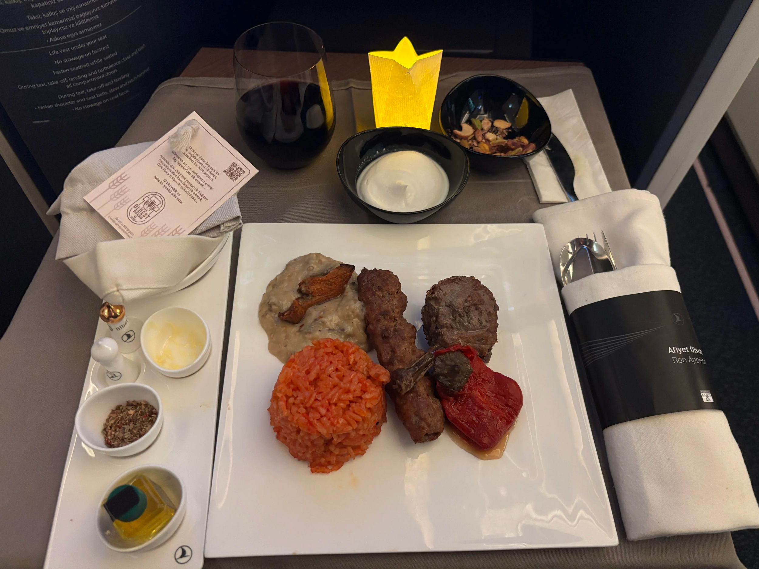 One of the things I really liked about the meal onboard this Turkish Airlines flight was the candle-lit effect, which gives it an extra-cozy feel, particularly in the secluded confines of your suite. It really gives it a more premium edge as well. Top marks for this!