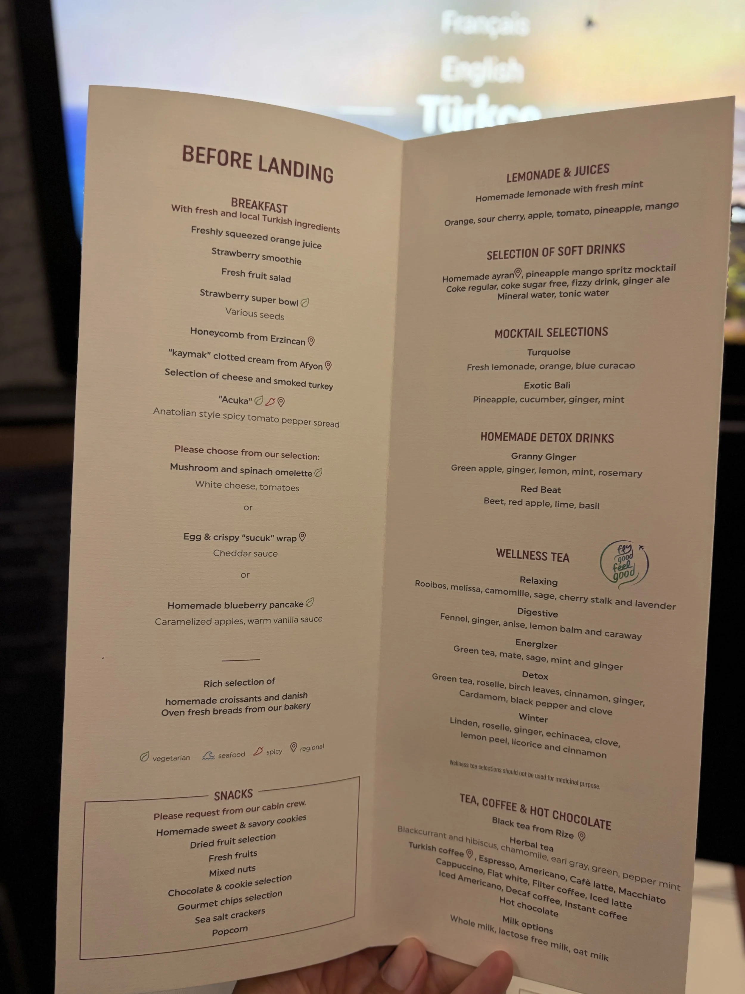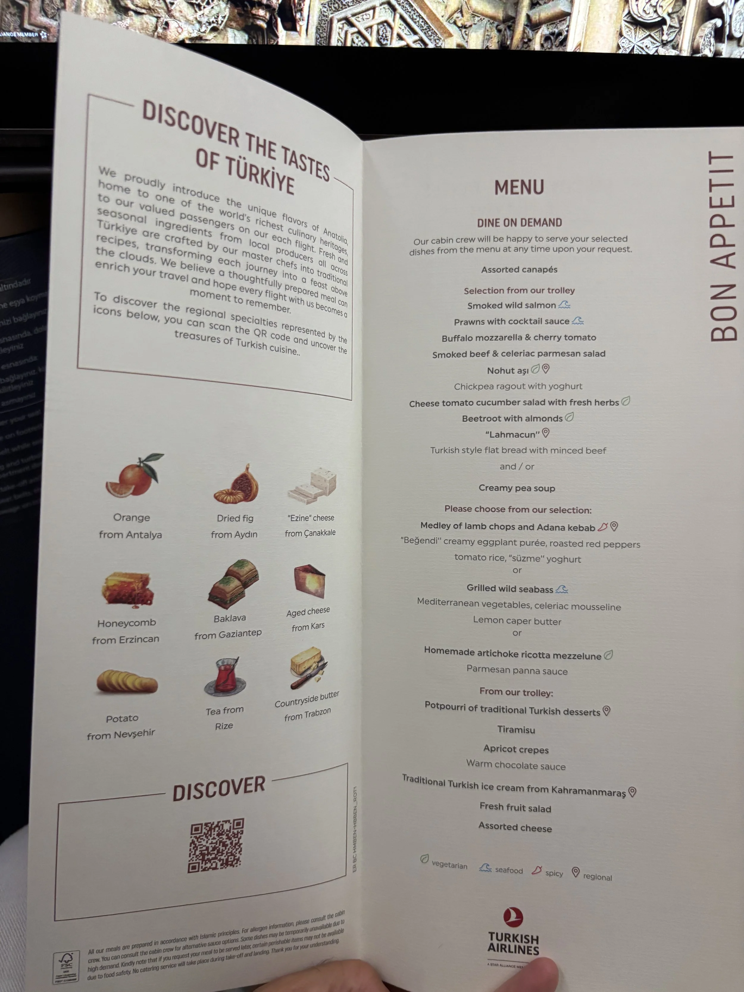 Turkish Airlines acts, in fact, like a window for some of Turkey’s most iconic foods and it offers quite a lot of information about them on the menus (you can also see what were the mains served on the this particular flight, btw) and also on its inflight digital platform.