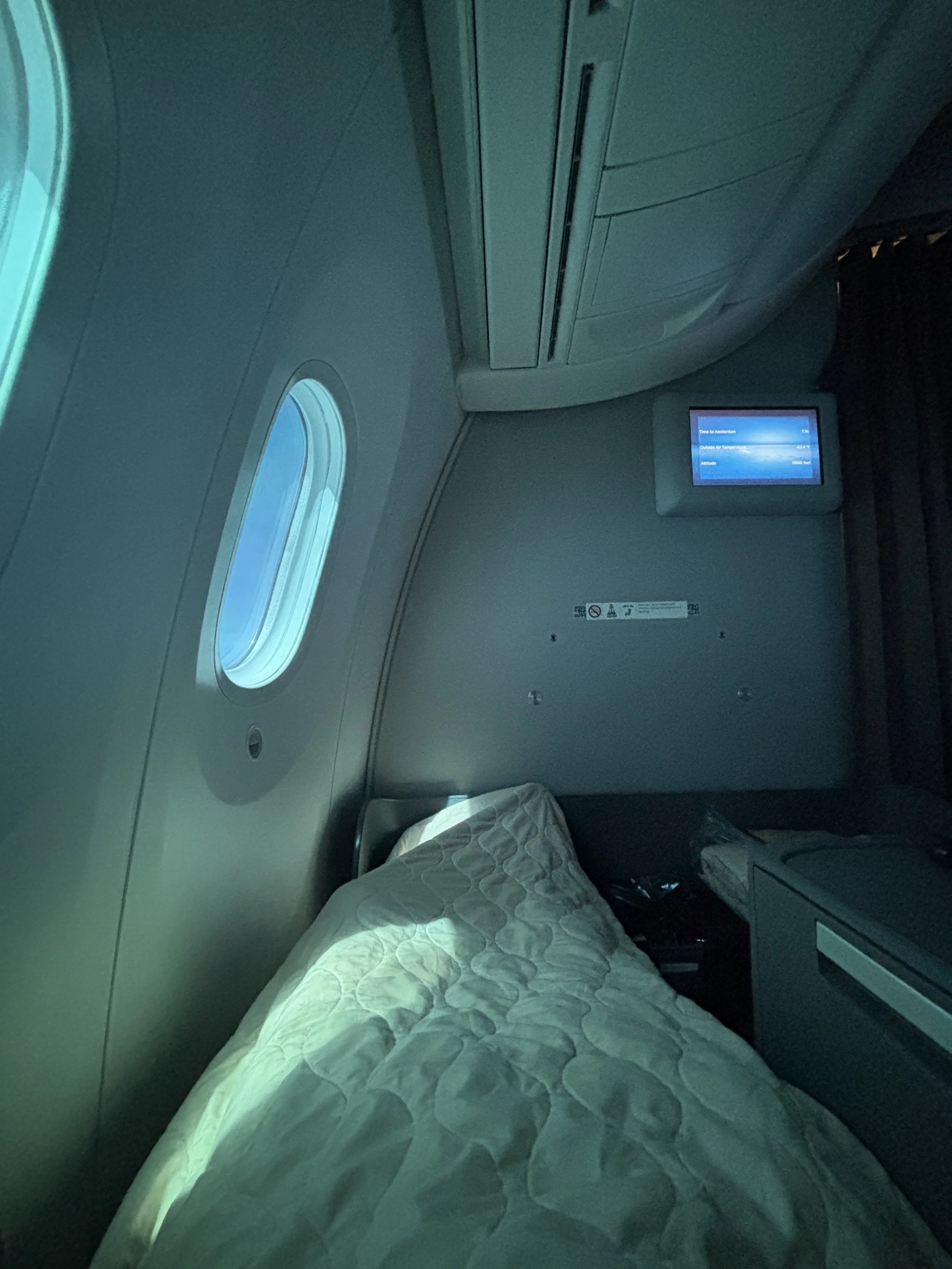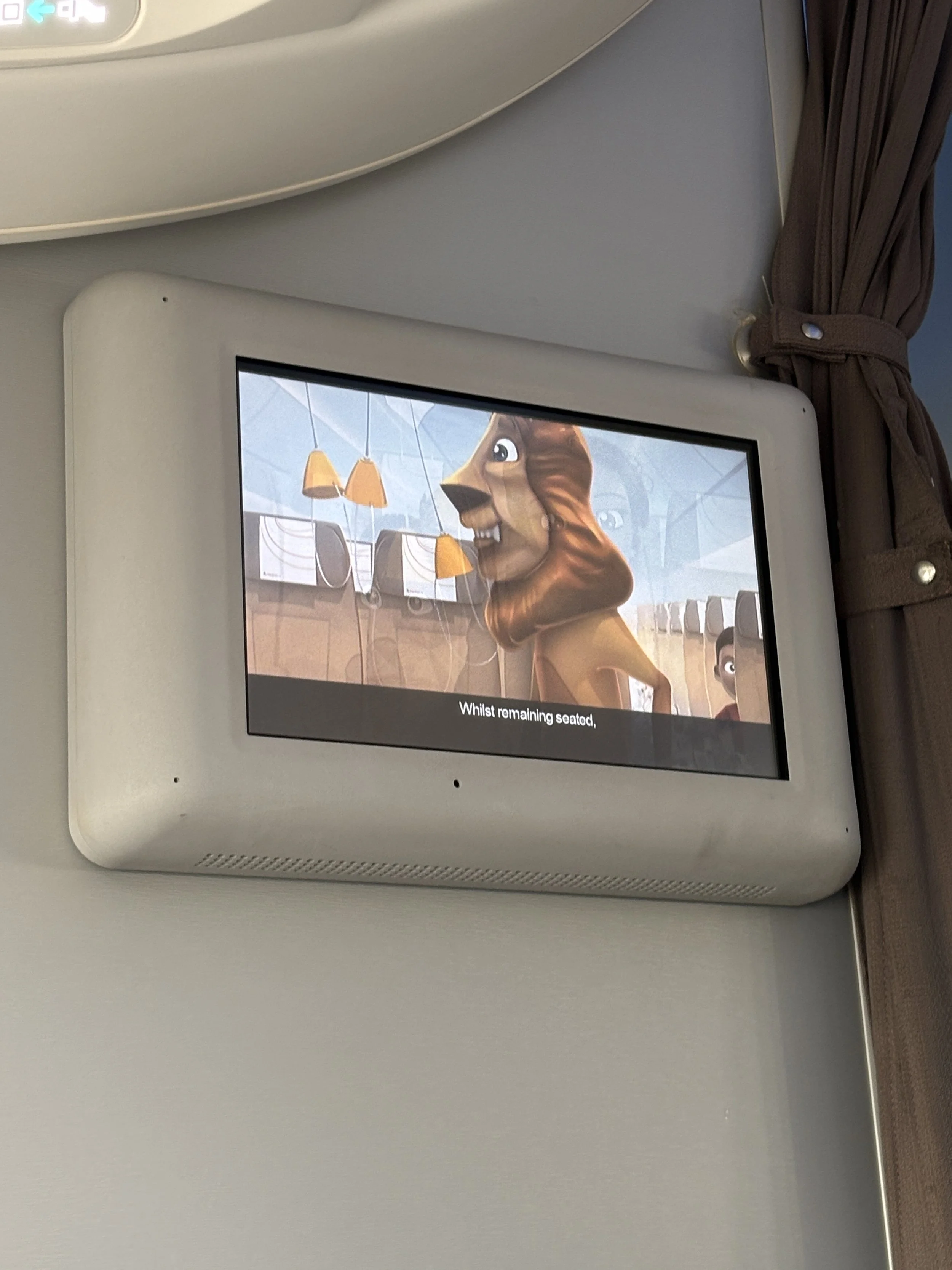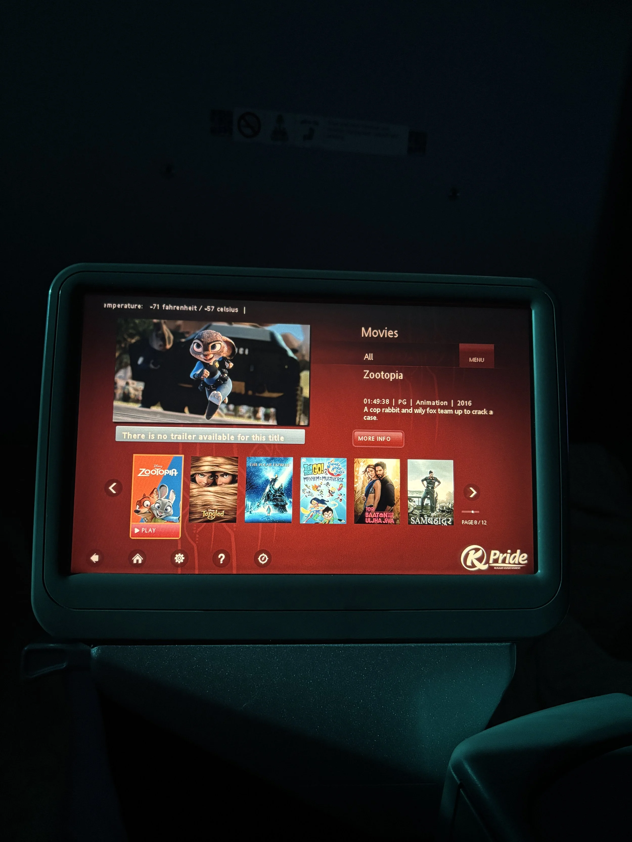 Since most people followed my example and set up to sleep a bit, the lights were dimmed in the cabin, so it was time to test the inflight entertainment system (IFE).