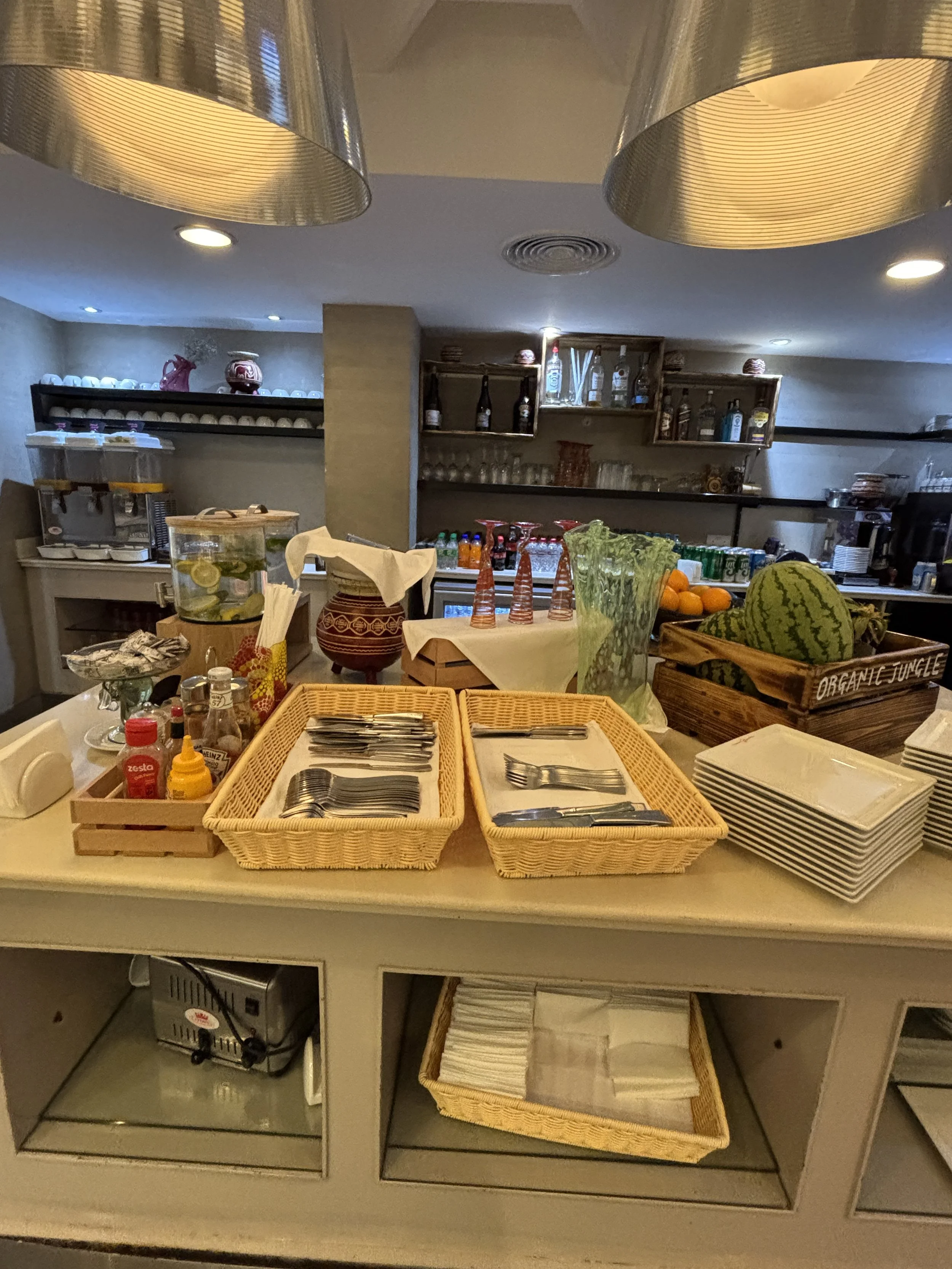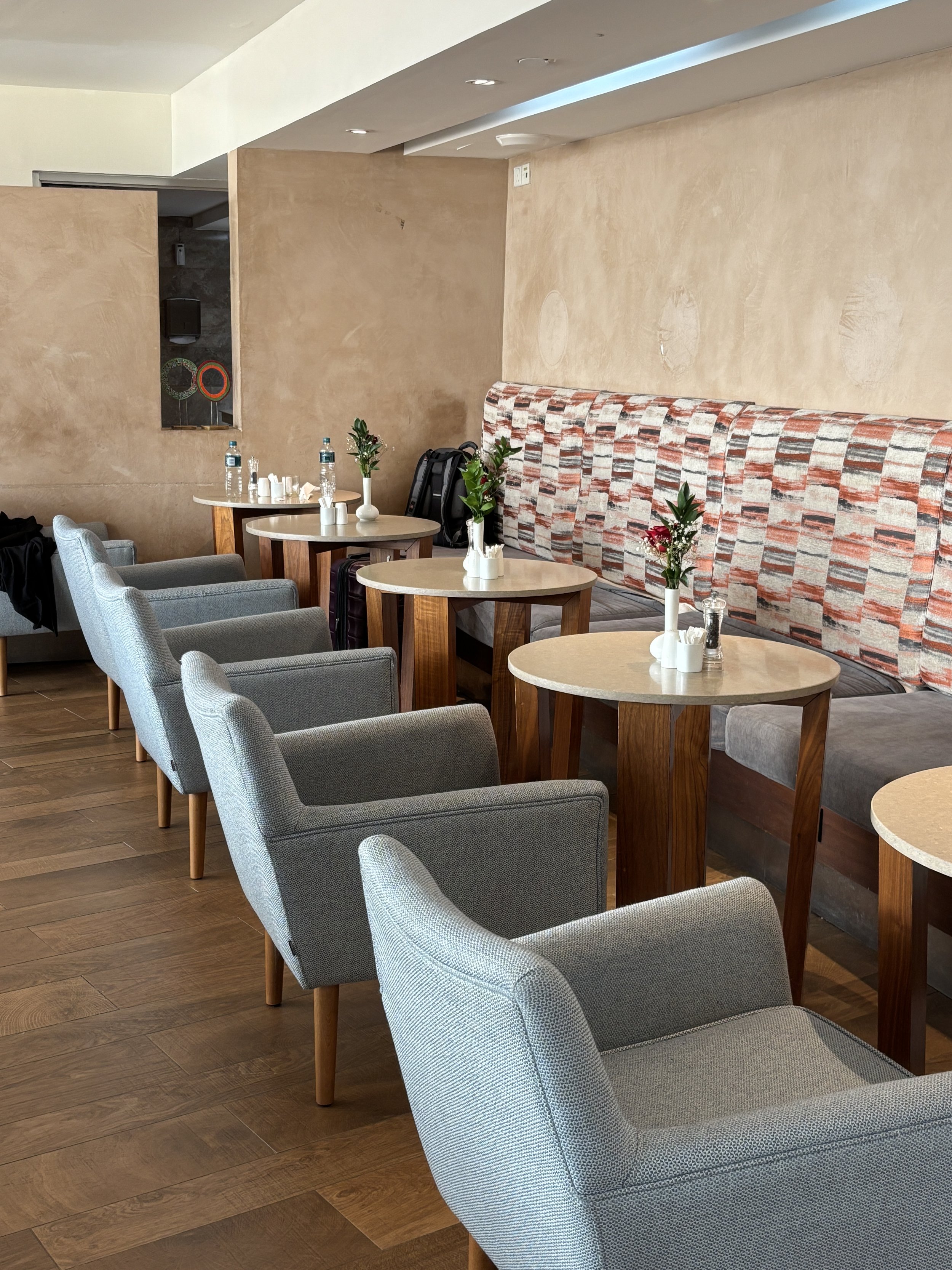 It is basically a single, elongated room, with a small buffet area for food and drink at the entrance and the rest of the space fitted with armchairs. To be fair, this one is way more limited in what it offers than the other too, but it may make sense to use it if your boarding gate is nearby and just want a quick refreshment before your flight.