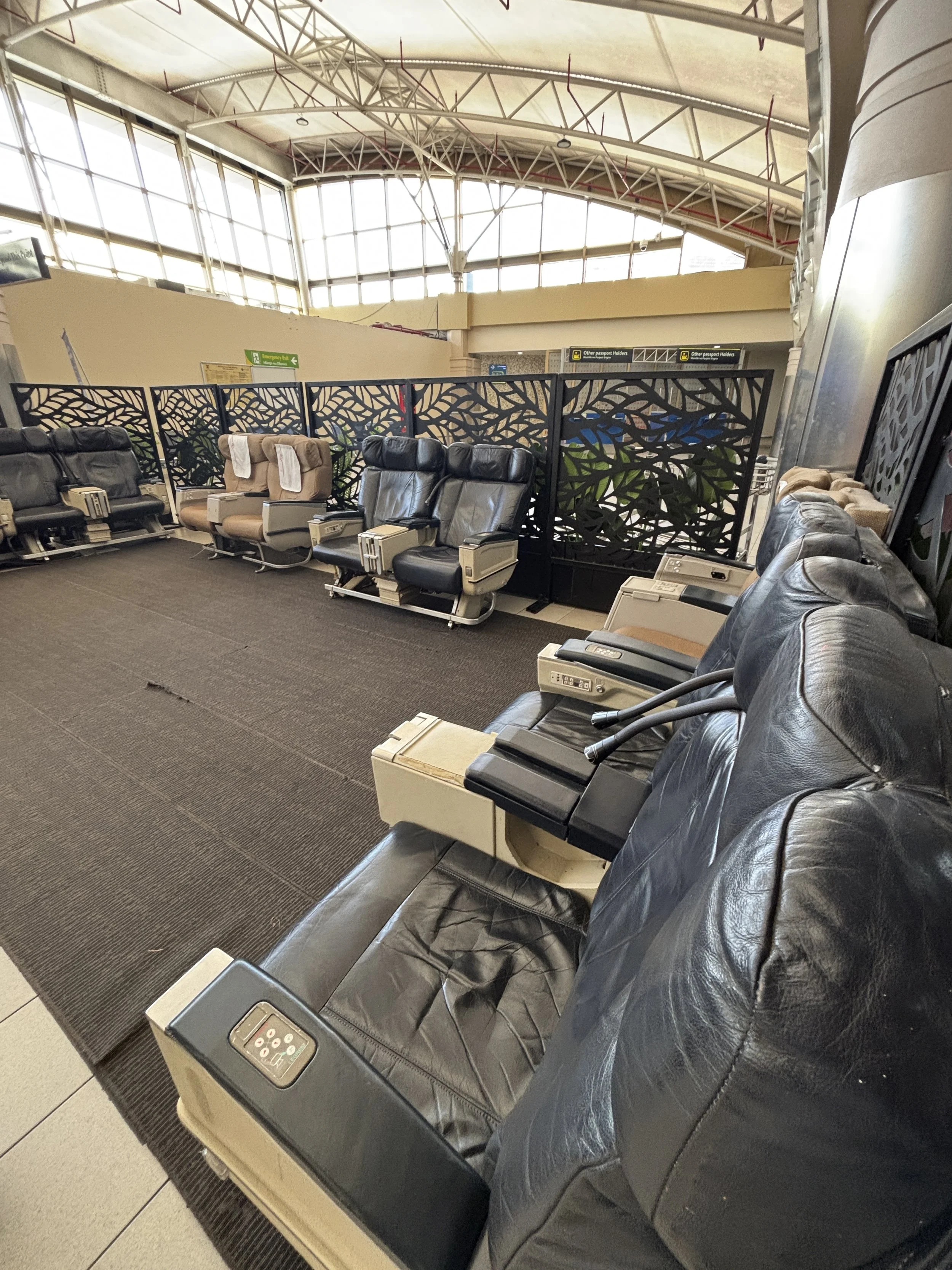 Nairobi airport is shaped as a semi-circle, or a horseshoe if you want, with this premium section at one of its extremes. You can see in the pictures below how it looks like. I found this waiting area furnished with business class seats particularly fascinating!
