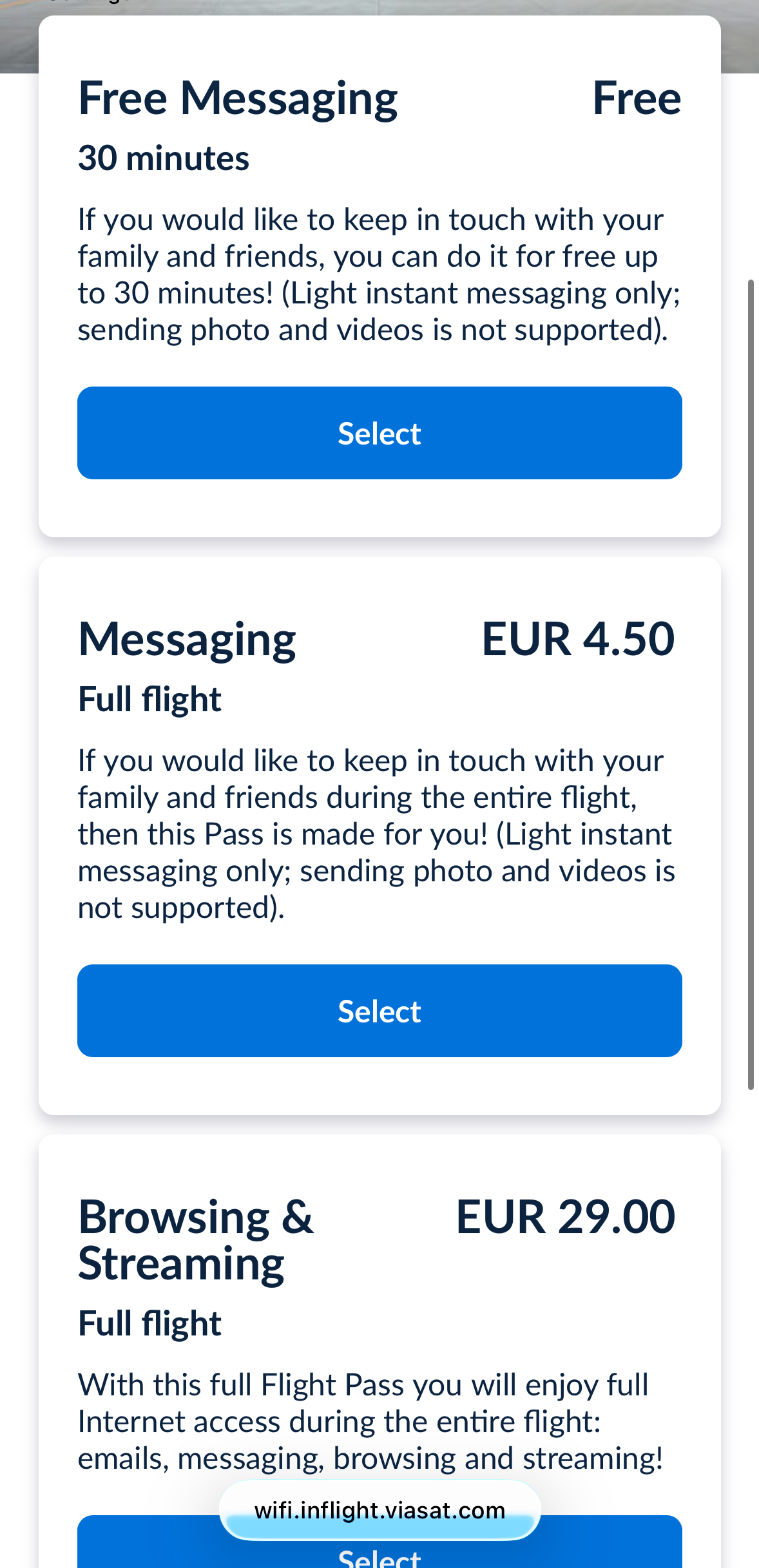 Wifi was available on my next flight, though, and there it worked. So, I could take some snaps of the different data plans which ITA Airways offers onboard.