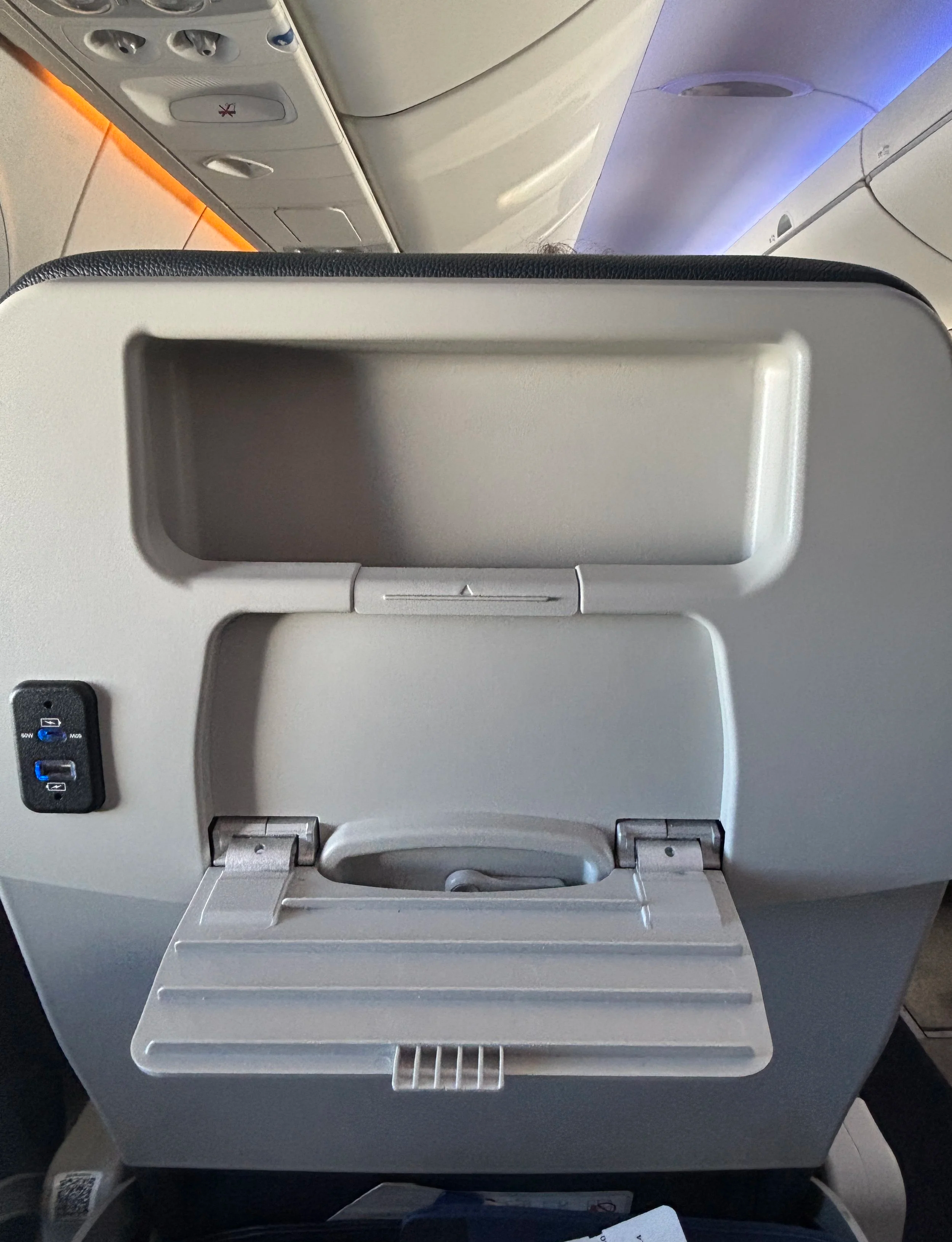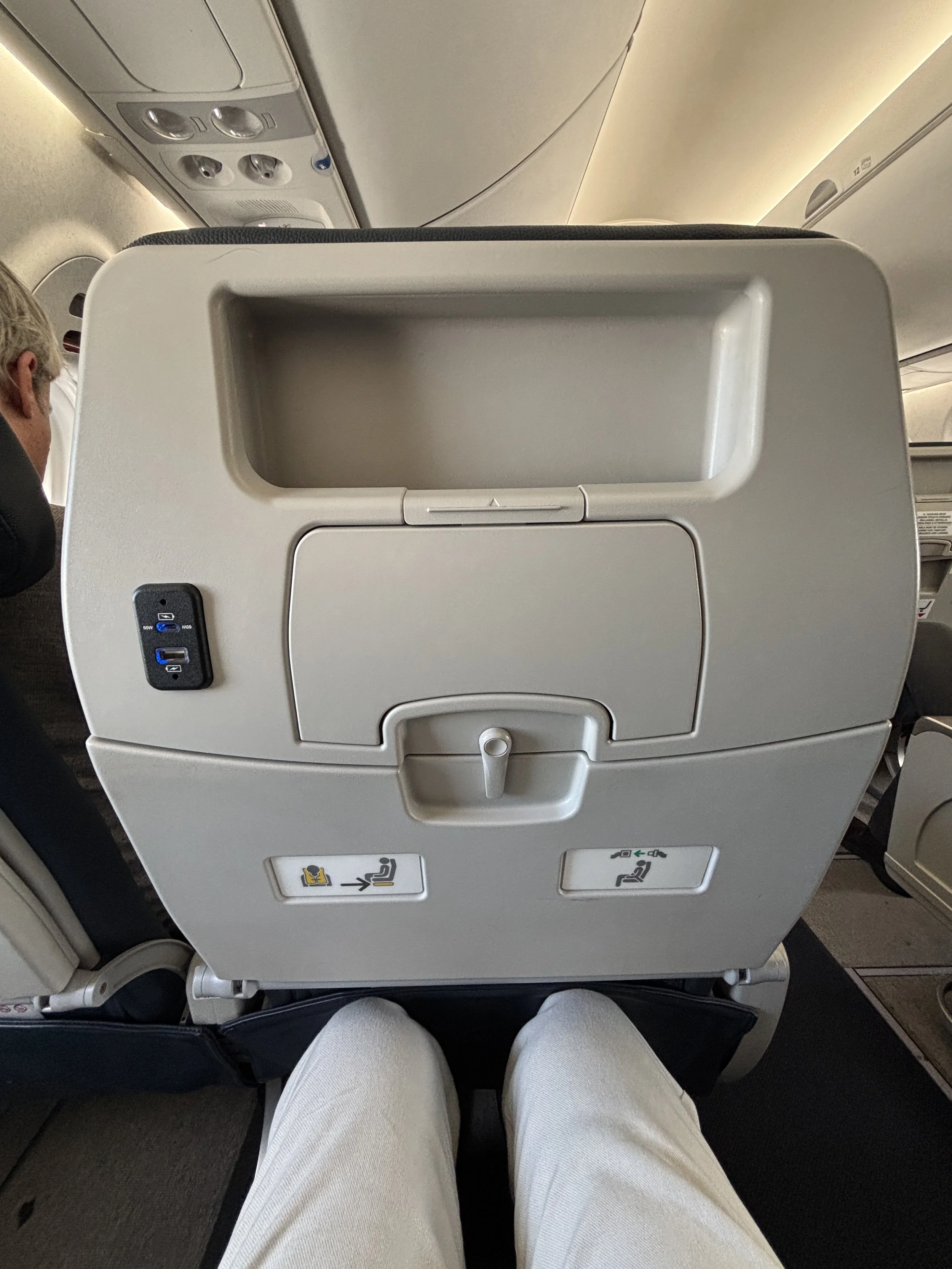 There is also a hard literature pocket at the top and a soft one at the bottom of the seat (curiously, the safety card was in the bottom one).