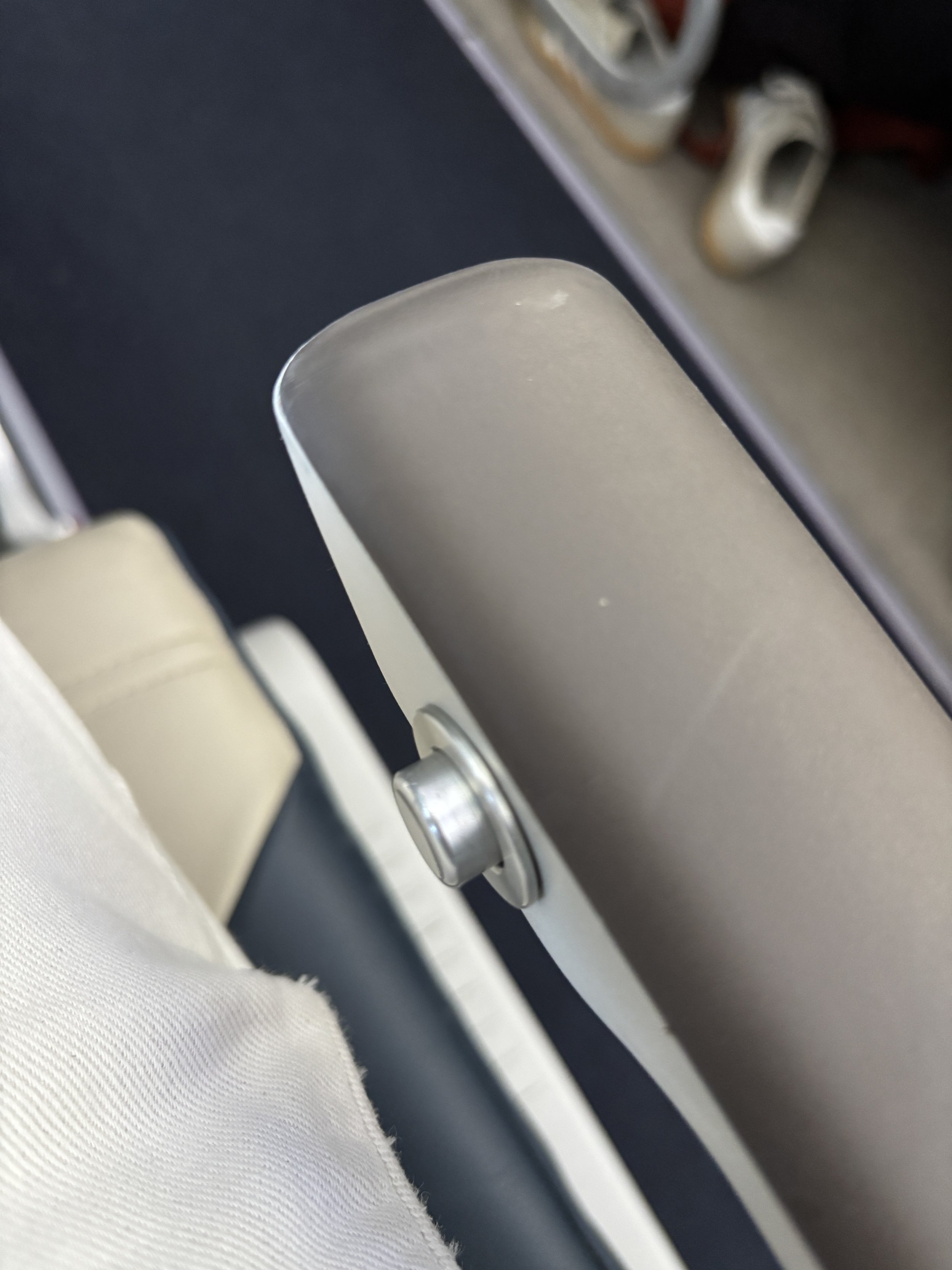Seat pitch is 30”, which is ok in economy. It does recline, though! See the button on the left side photo below…a rare sight nowadays on European airlines!