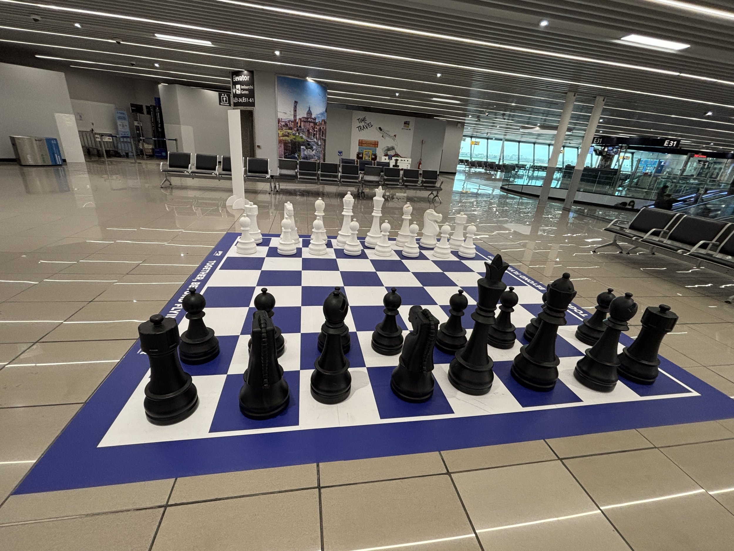 I also like the fact that there are quite a few fun amenities that invite passenger engagement, such as this giant chess board depicted here and several pianos that are scattered throughout the terminals and anyone can play.